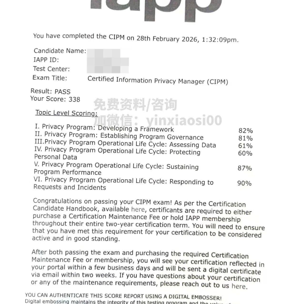 四天速成【CIPP/E】怎么复习?线上考试如何避坑?考完CIPP/E啦,顺利通关!✍🏻我的备考节奏是【四天速成】:Day1:把视频课快速过一遍(我有基础,之前与合规打不少交道,但比较零碎,不